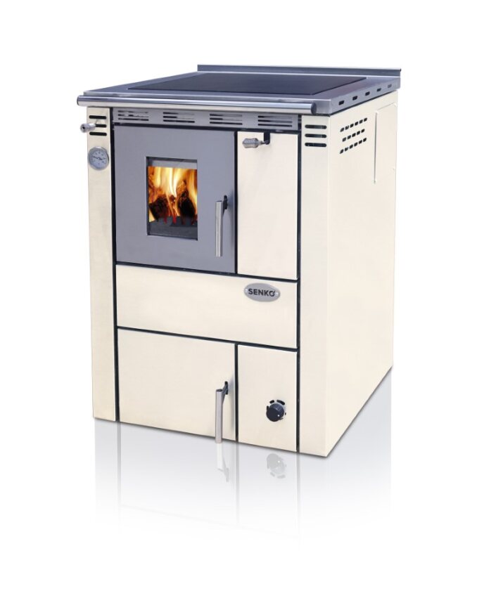 Caldeira com funcionamento a lenha para ligar ao aquecimento central e águas quentes sanitárias, pode ser instalada na cozinha ou outra divisão, placa para aquecer, permite cozinhar.
