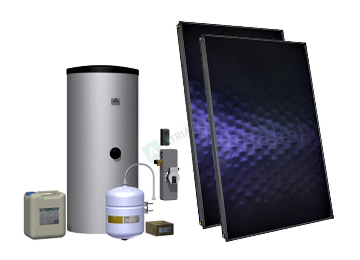 O conjunto solar foi concebido para o aquecimento de águas domésticas para as necessidades padrão de 3-5 pessoas com configurações ideais de coletores solares.