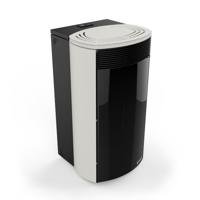 Termoestufa alimentada a pellet. Permutador tubular em cobre ou em aço com tecnologia FLUENTH. Termo ventilação desativável. Porta técnica para a câmera de combustão e elegante porta estética em aço com revestimento em vidro. Dupla cassete de limpeza para câmera de combustão e inspeção saída de fumos. Limpeza eletrônica do braseiro. Ampla modulação de potencia de funcionamento. Programação diária e semanal com relógio. Predisposição para termostato ambiente e display remoto. Dotação “Pronta para ligação”. Produção água quente sanitária em continuo (opcional). De serie eletrônica de controlo para um acumulador. Revestimento em aço lacado em 5 cores.