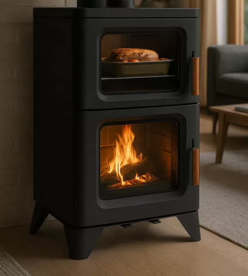 SALAMANDRA A LENHA COM FORNO E PLACA PARA COZINHAR