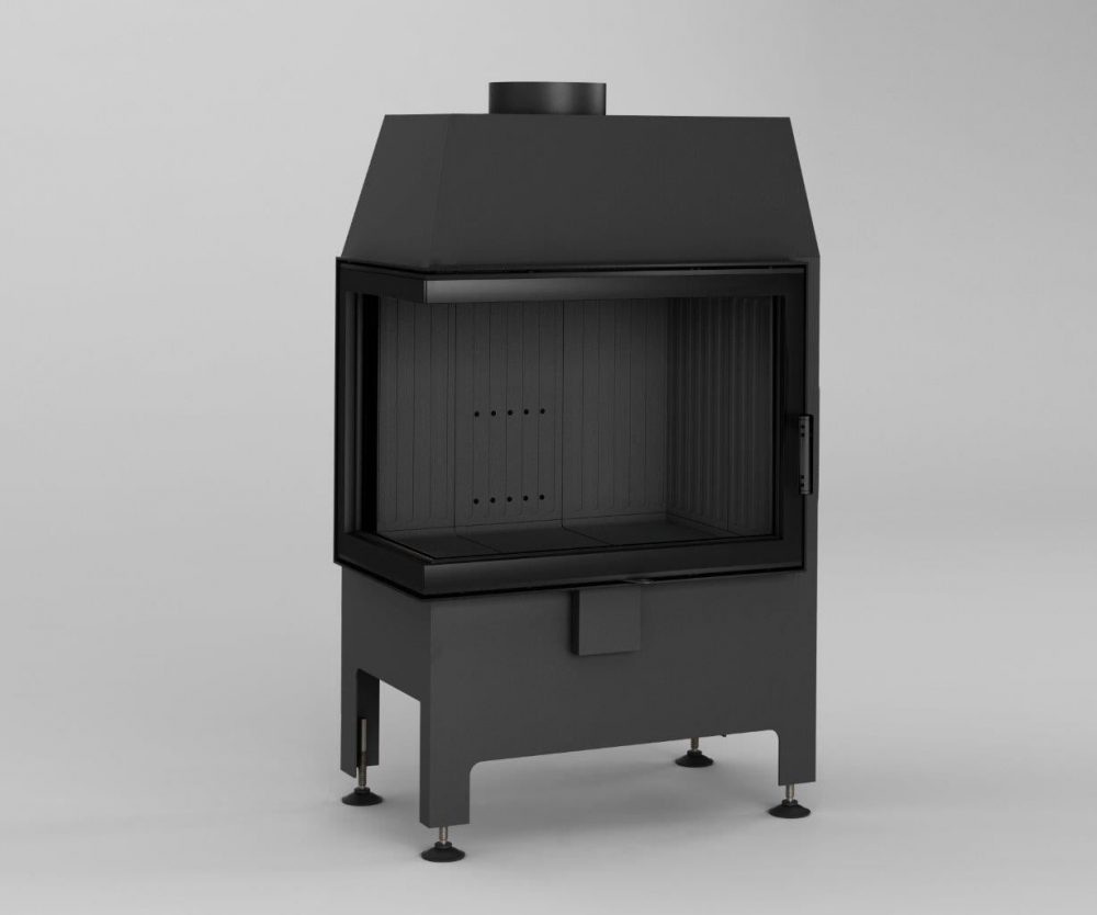 Funcionamento a lenha com visão lateral esquerda