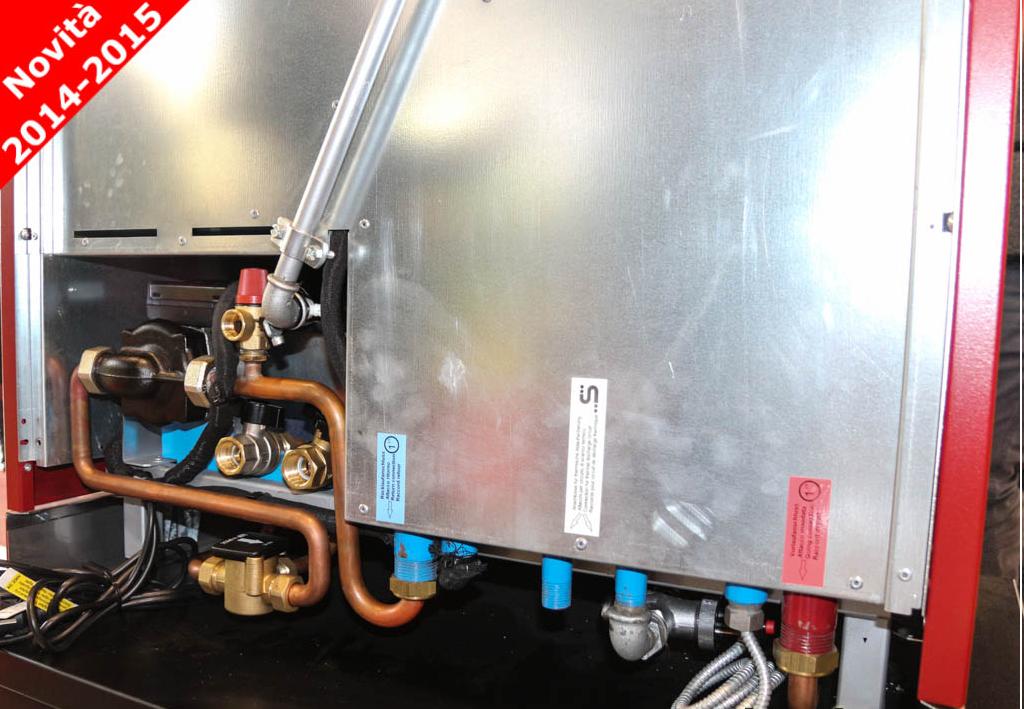 A câmara de combustão do termo cozinha equipado com um permutador de calor especial capaz de desenvolver, graças à combustão dupla, temperaturas muito elevadas que aquecem a água neles contida a uma velocidade incrível. O sistema de funcionamento é o mesmo que o biofocolare, de modo a assegurar um elevado rendimento, com emissões mínimas, enquanto respeite o ambiente. A água produzida será então introduzida no sistema por uma bomba externa controlada pela * centralina eletrônica da termo cozinha. Especial atenção foi dedicada à segurança: o permutador está equipado de série com um circuito de cobre que permite, através da ligação a uma válvula de descarga térmica, a passagem de água fria que irá diminuir a temperatura no interior da caldeira, em caso de aquecimento excessivo e aumento da pressão, mesmo na ausência de energia Elétrica. Este sistema, conforme a norma UNI 10.412-2, permitirá que uma instalação segura em sistemas de aquecimento com ** vaso de expansão. Todos os fogões são equipados com AIR SISTEM Sistema de arrefecimento das paredes laterais para a inserção com o mobiliário da cozinha, estão também disponíveis soluções monobloco combinado para integrar de uma forma harmoniosa em sua decoração.